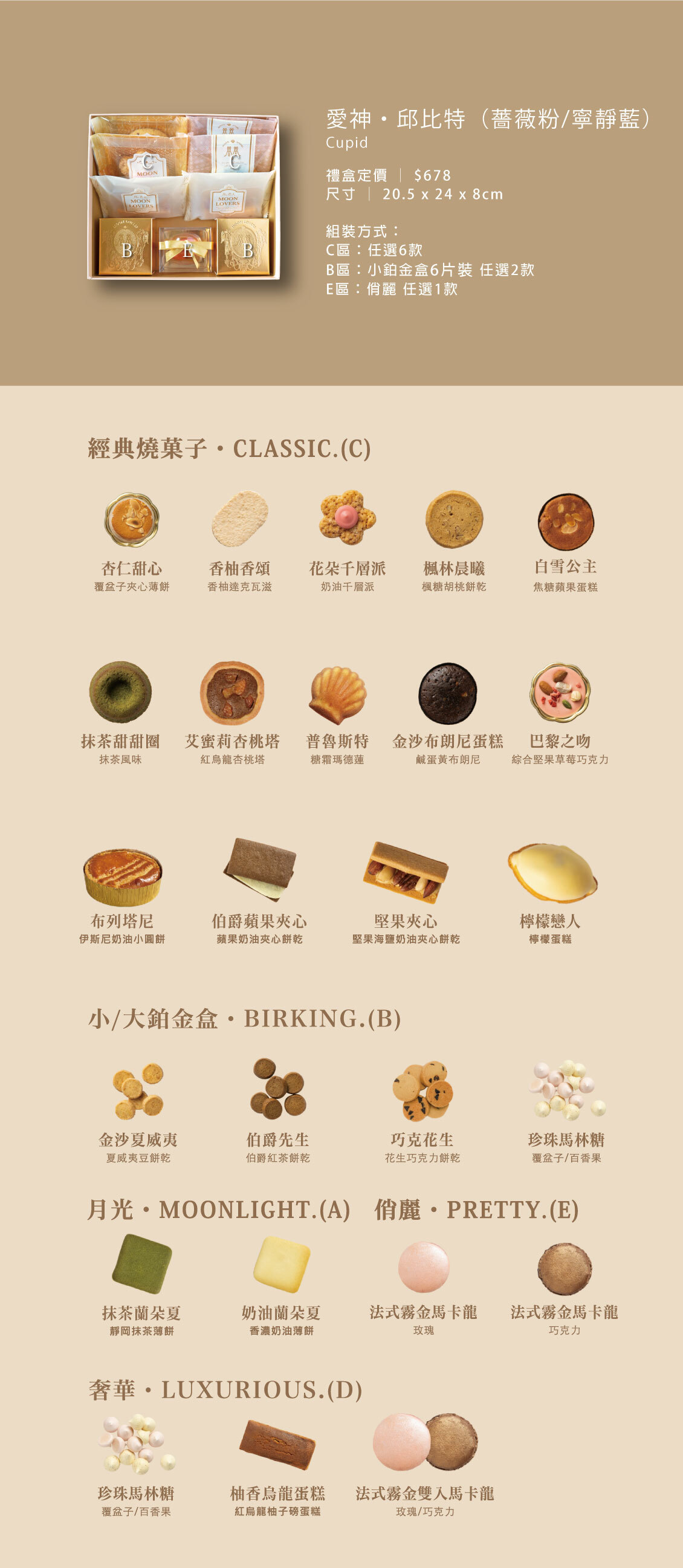 左:花朵千層派*1、爵士可可夾心*1、檸檬戀人蛋糕*1、伯爵先生*1盒(小鉑金盒6片裝)