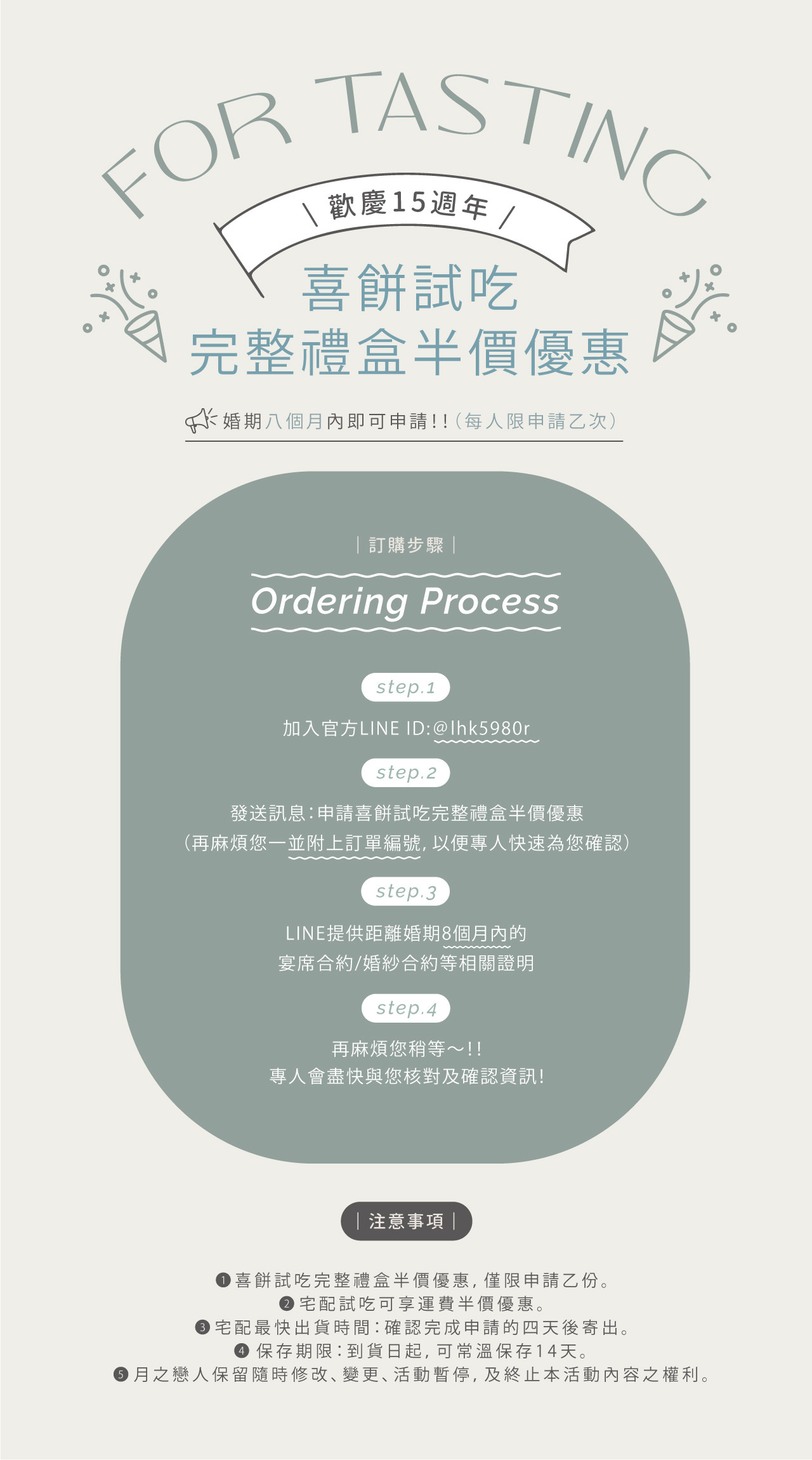 即可享試吃半價優惠,在正式下訂前,與摯愛一同品嚐專屬於你們的甜蜜溫度。